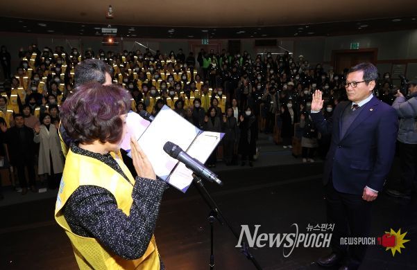 뉴스펀치 김호정 기자 | 강릉시는 11일 오후 1시 40분 강릉단오제전수교육관 공연장에서 6개 수행기관의 참여자 500여 명 및 김홍규 강릉시장, 최익순 강릉시의회의장 등이 참석하여 2025년 노인일자리 및 사회활동지원사업 발대식 및 소양교육을 실시, 성공적인 사업 운영을 다짐한다.