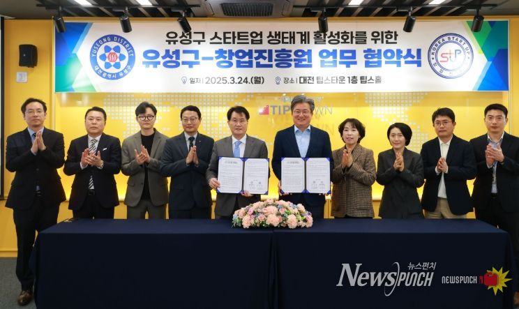 뉴스펀치 이현승 기자 | 대전 유성구와 창업진흥원이 24일 대전 팁스타운에서 업무협약을 체결하고 지역 스타트업 생태계 활성화에 나선다.