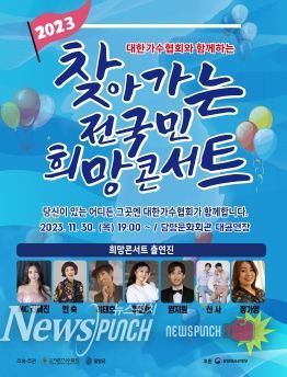 뉴스펀치 고서아 기자 | 담양군은 오는 30일 목요일 저녁 7시 담양문화회관 대공연장에서 대한가수협회와 함께하는 ‘2023 찾아가는 전국민 희망콘서트’를 개최한다.