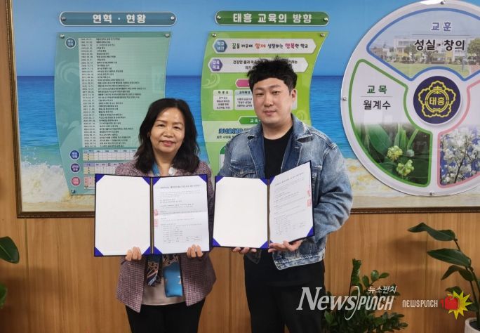 뉴스펀치 천세두 기자 | 제주도교육청 태흥초등학교는 8일 교장실에서 남원읍문화체육복합센터와 함께 제주형 자율학교(마을생태학교) 학교 특색활동 ‘도전! 수영 교육 프로그램’ 운영을 위한 업무협약(MOU)을 체결했다.
