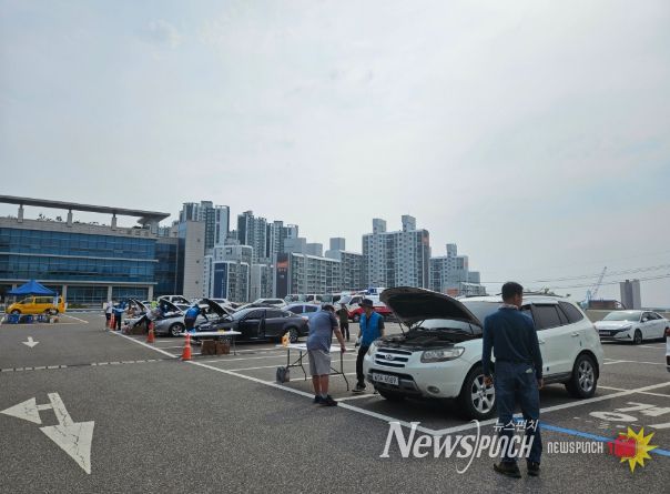 이날 행사에서는 관내 주민들의 차량을 대상으로 엔진 점검, 타이어 마모 상태 점검, 와이퍼 교체, 브레이크 오일·워셔액 보충 등 10여 개 항목에 대해 무상으로 점검·정비를 실시하고, 정밀 점검이 필요한 차량의 소유자에게는 별도로 정밀 점검을 받도록 안내했다.