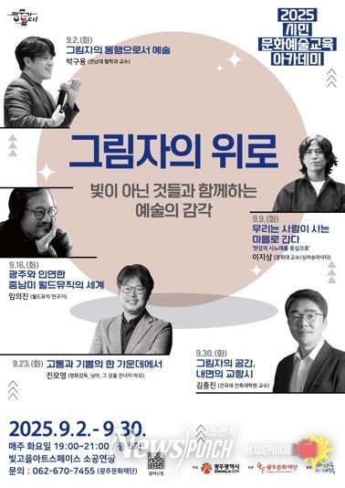 뉴스펀치 조은별 기자 | 광주문화재단이 주최하는 ‘2025 시민 문화예술교육 아카데미’가 오는 9월 2일 저녁 7시, 빛고을아트스페이스 소공연장에서 첫 회차 강연을 연다.