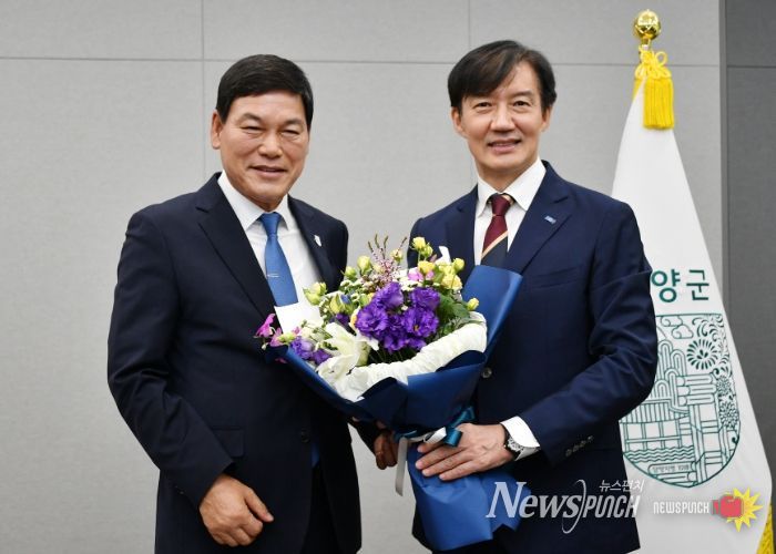 뉴스펀치 김길룡 기자 | 정철원 담양군수가 27일 담양군청을 방문한 조국 조국혁신당 혁신정책연구원장과 만나 지역 현안을 논의하고 당 차원의 협력을 요청했다.