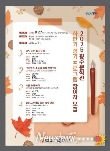 뉴스펀치 조은별 기자 | 광주문학관은 시민들의 문학적 감수성과 창작 역량을 키우기 위해 9월부터 11월까지 하반기 정기 프로그램을 마련, 참가자를 모집한다.