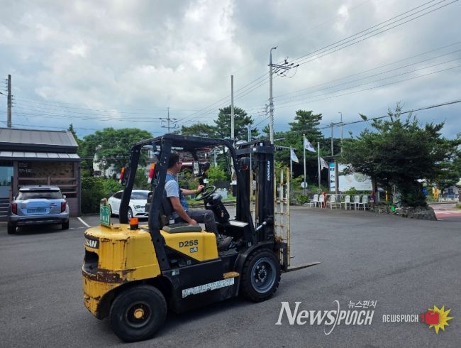 뉴스펀치 천세두 기자 | 제주특별자치도가 올해 처음 추진하는 ‘2025년도 건설기계 전동화 개조 지원 사업’으로 지난 7월 서귀포시 남원읍 한남리에 도입된 전기 지게차가 주민들 사이에서 호평을 받고 있다.