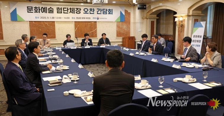 뉴스펀치 김희경 기자 | 문화체육관광부 최휘영 장관은 9월 1일, 켄싱턴호텔 여의도(서울 영등포구)에서 음악, 연극, 무용, 문학, 미술 등 예술 분야별 협회‧단체장들을 만나 예술계 현장 목소리를 청취하고 지속 가능한 발전 방향 및 지원 방안을 논의했다.