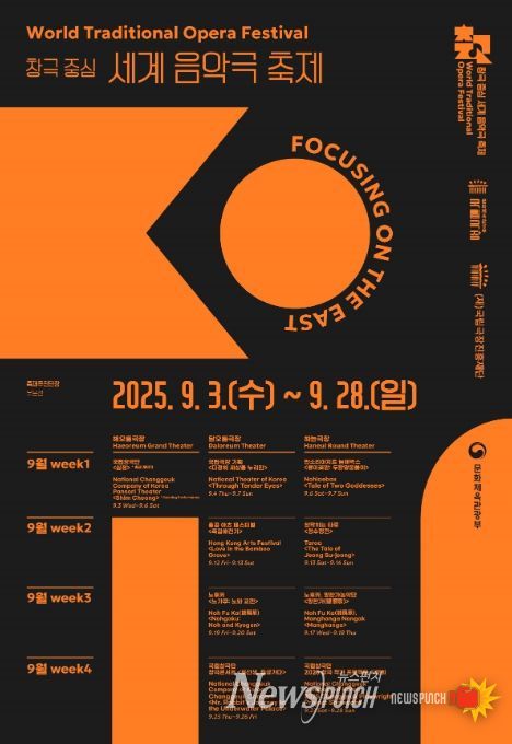 뉴스펀치 김희경 기자 | 문화체육관광부는 국립극장과 함께 9월 3일부터 28일까지 국립극장과 연계 지역 공연장 등에서 한국 고유 음악극인 창극을 중심으로 세계 각국의 전통 음악극을 한자리에 모은 ‘창극 중심 세계 음악극 축제(World Traditional Opera Festival)’를 개최한다.