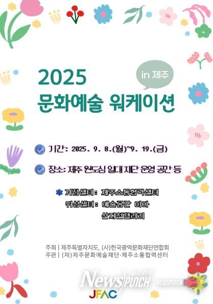 뉴스펀치 천세두 기자 | 제주특별자치도와 한국광역문화재단연합회가 주최하고 제주문화예술재단이 주관하는『2025년 문화예술 워케이션 in 제주』 2차 프로그램이 오는 9월 8일부터 2주간 운영된다.