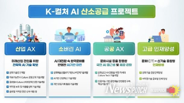 이에 2026년 문체부 연구개발(R&D) 예산은 ‘케이(K)-컬처 에이아이(AI) 산소공급 프로젝트’를 중심으로 구성해 ‘케이-컬처’의 전후방 산업 파급력을 증대시키고 ‘인공지능 3강 도약’을 위한 인공지능 활용을 극대화한다. 이를 통해 ▴콘텐츠산업의 기획부터 제작, 수출 전 과정에 인공지능 기술을 도입해 산업의 인공지능 전환(AX)을 도모하고, ▴한국문화를 반영한 인공지능 기술을 개발해 자국 인공지능(소버린 AI)을 강화한다. ▴공공 문화시설에 인공지능 기술을 적용해 국민의 인공지능 접근성과 체감도를 높이고, ▴융합형 인공지능 인재를 양성하는 사업도 추진해 ‘세계 소프트파워 5대 문화강국’ 실현에 기여할 것으로 보인다.