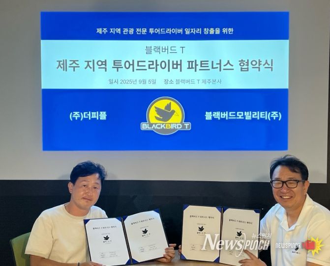 제주테크노파크(원장 지영흔, 제주TP)는 정부와 제주도 지원을 받고 있는 블랙버드모빌리티㈜(대표 박상돈)가 제주 인력공급 전문기업 더피플(대표 김하용)과 지난 5일 업무협약을 체결하고 ‘관광 전문 투어드라이버 양성 프로그램’을 본격 추진한다고 8일 밝혔다.