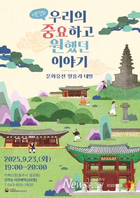 뉴스펀치 김희경 기자 | 국가유산청 국립문화유산연구원 국립중원문화유산연구소는 오는 23일 오후 7시 충주 탄금공원 인근에서 ‘우리의 중원(중요하고 원했던) 이야기’ 하반기 시민강좌를 개최한다.