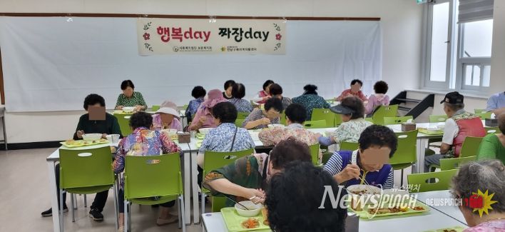 경로식당을 이용하시는 어르신들을 위해 '행복day, 짜장day'를 개최하고, 직접 만든 짜장면을 대접했다.