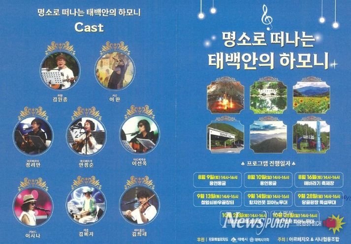 뉴스펀치 김보성 기자 | 태백시는 지역 명소를 무대로 시민과 관광객이 함께 즐기는 음악 공연 ‘태백안의 하모니’가 시민과 관광객을 위해 펼쳐지고 있다고 밝혔다.