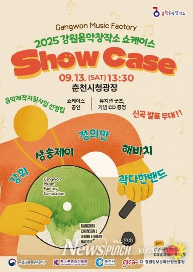 뉴스펀치 김보성 기자 | 강원음악창작소가 오는 9월 13일 춘천시청 광장에서 ‘2025 강원음악창작소 쇼케이스’를 개최한다.