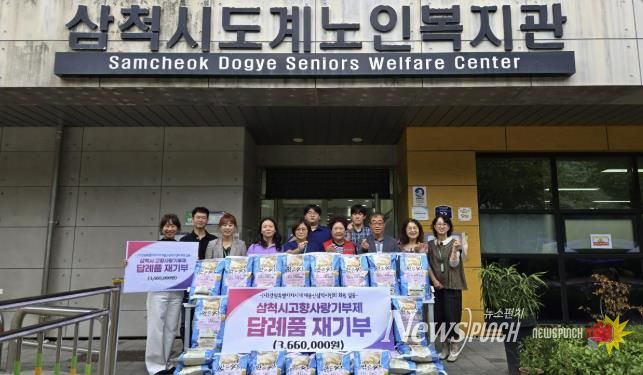 뉴스펀치 김보성 기자 | 삼척시는 (사)강원특별자치시대 재울산삼척시민회가 9월 10일, 삼척 특산물 ‘삼척동자 맑은쌀 10kg 122포’(366만 원 상당)를 도계노인복지관에 전달하며 고향사랑기부금 답례품을 다시 기부하는 나눔을 실천했다고 밝혔다.