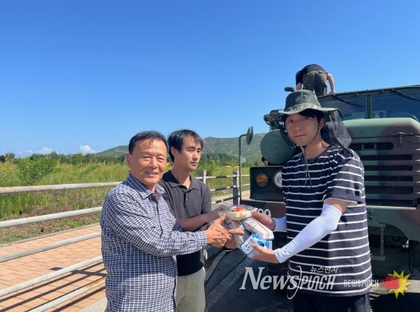 뉴스펀치 김보성 기자 | 옥계농협(조합장 최종무)에서는 11일 목요일 옥계면에서 홍제정수장으로 운반급수 지원을 하고 있는 지원인력을 위해 빵과 우유 50인분을 전달했다.