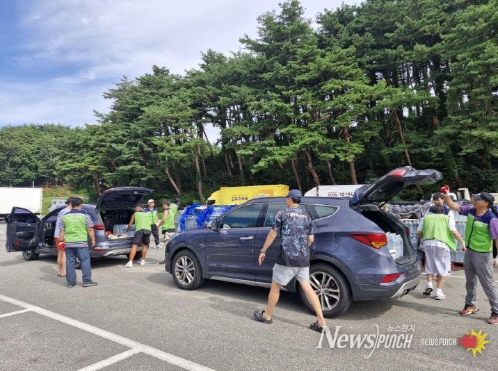 뉴스펀치 김보성 기자 | 강릉시 아동보육과 전 직원과 자원봉사자 25명은 지난 14(일) 보건소 주차장에서 관내 영아 가구 생수 배부를 위해 구슬땀을 흘렸다.