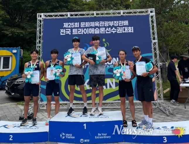 뉴스펀치 김길룡 기자 | 천안시는 천안시청 직장운동경기부 철인3종팀이 지난 12일 전북 익산에서 열린 제25회 문체부장관배 전국 트라이애슬론 대회 엘리트부문 남자단체전에서 우승을 거뒀다고 15일 밝혔다.