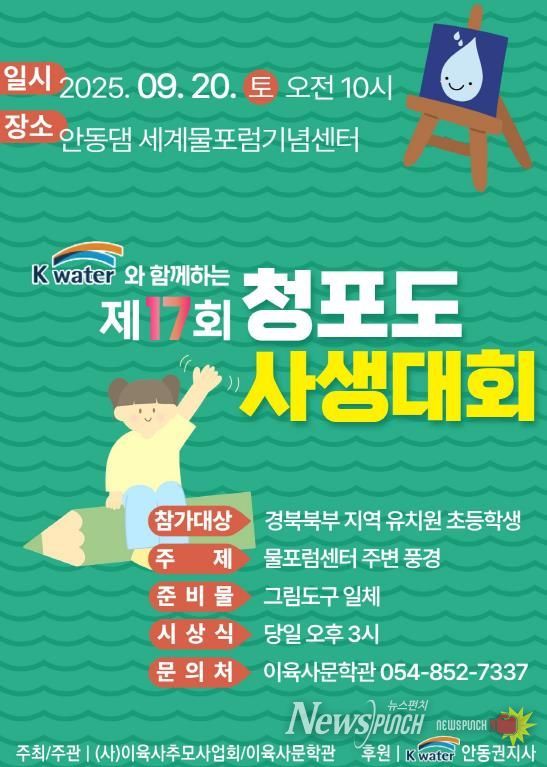 뉴스펀치 김종율 기자 | K-water가 후원하고 (사)이육사추모사업회가 주최, 이육사문학관이 주관하는 '제17회 청포도 사생대회'가 오는 9월 20일(토) 오전 10시, 세계물포럼기념센터에서 열린다.