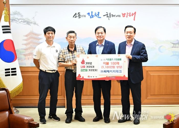 뉴스펀치 김종율 기자 | 김천시는 지난 15일, ㈜씨에이치테크(대표 송창수)로부터 저소득층을 위한 이불 100채(1,100만 원 상당)를 전달받았다고 밝혔다.