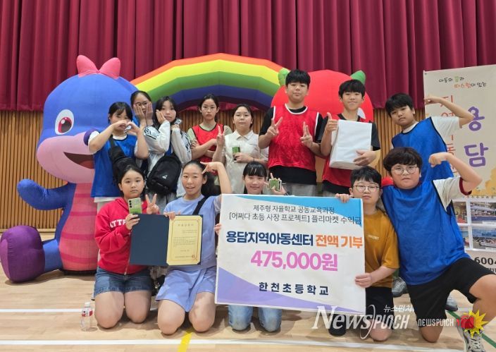 뉴스펀치 천세두 기자 | 제주도교육청 한천초등학교는 14일 제주형 자율학교 공동교육과정 ‘어쩌다 초등 사장 활동’ 플리마켓 수익금 47만5000원을 용담지역아동센터에 기부했다.