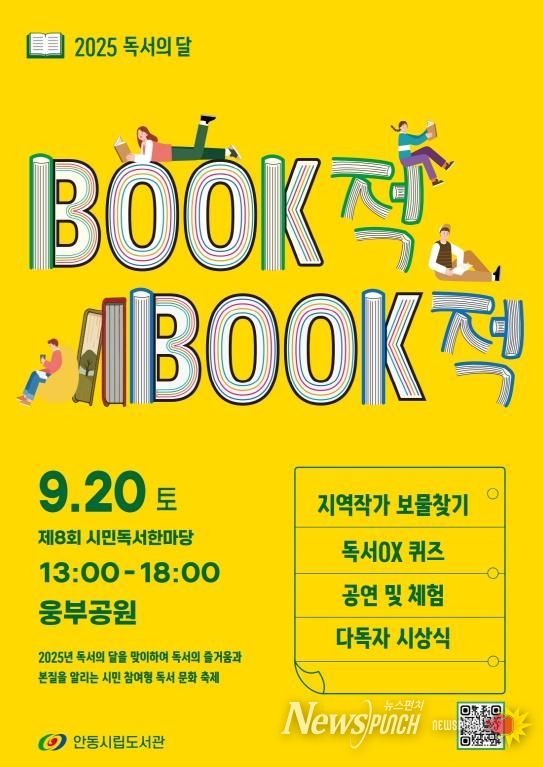 뉴스펀치 김종율 기자 | 안동시립도서관이 ‘9월 독서의 달’을 맞아 9월 20일 오후 1시부터 6시까지 웅부공원에서 『제8회 Book적 Book적 시민독서한마당』을 개최한다.