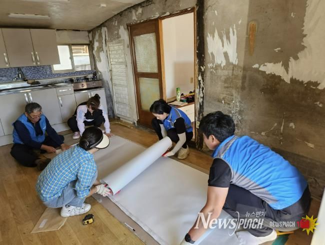 이번 봉사는 거동이 불편하고 가정 형편도 어려워 집을 제대로 손볼 수 없었던 어르신을 위해 마련됐다. 해당 가구는 벽지 곳곳이 들떠 단열 기능이 크게 낮아진 상태였으며, 장판도 심각하게 훼손돼 생활에 큰 불편을 주고 있었다.