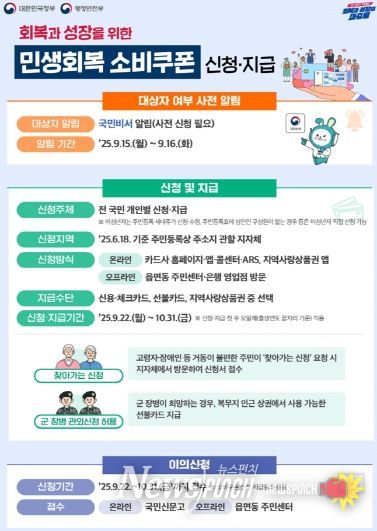 뉴스펀치 김종율 기자 | 영덕군은 오는 22일부터 ‘민생회복 소비쿠폰 2차’ 신청 접수에 돌입한다.