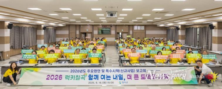 뉴스펀치 김종율 기자 | 칠곡군은 9월 16일, 군청 강당에서 6급 팀장 이상 200여 명이 참석한 가운데 ‘2026년 주요현안 및 특수시책 보고회’를 가졌다.