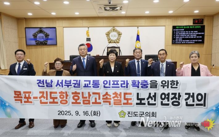 뉴스펀치 손석남 기자 | 진도군의회는 9월 16일에 열린 제310회 진도군의회 임시회에서 '목포-진도항 호남고속철도 노선 연장 건의안'이 채택했다고 밝혔다.