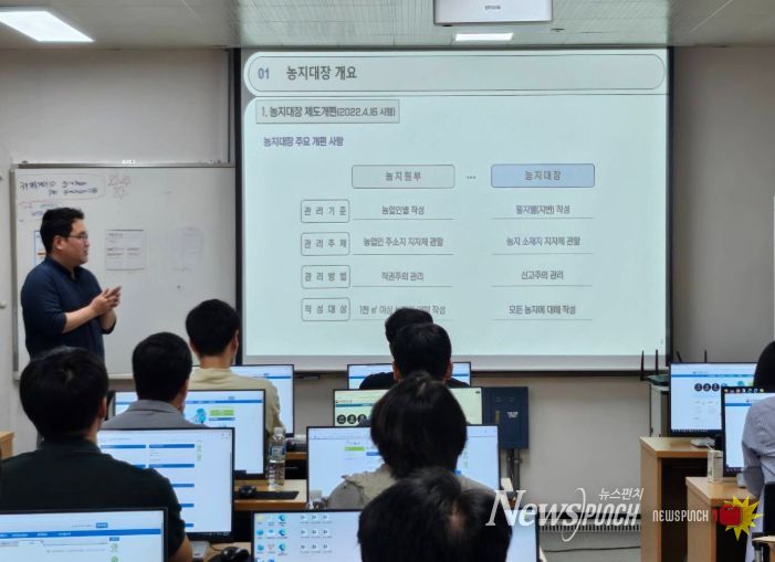 뉴스펀치 김종율 기자 | 김천시는 지난 17일 시청 전산교육장에서 22개 읍면동 농지 업무 담당자를 대상으로 2025년도 하반기 농지정보시스템 사용자 교육을 실시했다.