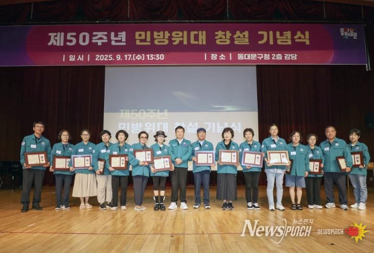 뉴스펀치 김완규 기자 | 서울 동대문구는 17일 구청 2층 다목적강당에서 ‘민방위대 창설 제50주년 기념행사’를 성황리에 개최했다고 밝혔다.