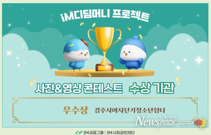 뉴스펀치 김종율 기자 | 경주시여자단기청소년쉼터는 지난 10일 iM사회공헌재단과 한국청소년상담복지개발원이 주관한 iM디딤머니 프로젝트 콘테스트에서 우수상을 수상했다고 밝혔다.