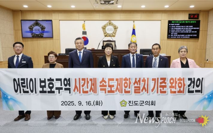 뉴스펀치 손석남 기자 | 진도군의회는 9월 16일에 열린 제310회 진도군의회 임시회에서 '어린이 보호구역 시간제 속도제한 설치 기준 완화 촉구 건의안'을 채택했다고 밝혔다.