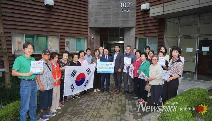 뉴스펀치 김보성 기자 | 춘천시는 18일 후평2동 포스코더샾A 102동에서 ‘태극기 달기 시범아파트 릴레이 현판식’을 개최했다.