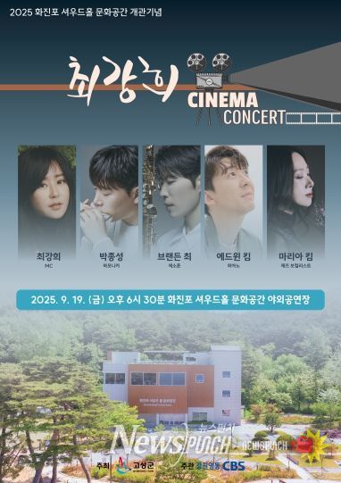 뉴스펀치 김보성 기자 | 평화 경제 거점 도시 강원 고성군(군수 함명준)은 9월 19일(금) 오후 6시 30분, 거진읍 화진포길 278에 위치한 화진포 셔우드 홀 문화공간 야외무대에서 '화진포 셔우드 홀 시네마 콘서트'를 개최한다.