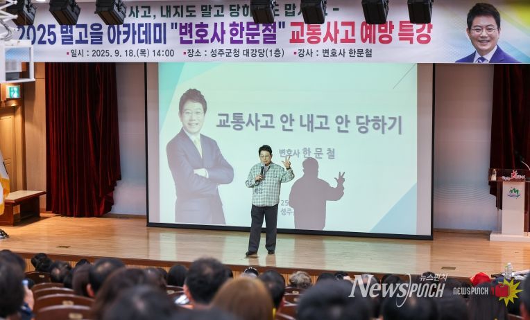 뉴스펀치 김종율 기자 | 성주군은 지난 9.18일 군청 대강당에서 군민, 공무원 등 250여명이 참석한 가운데 교통사고 전문 한문철 변호사를 초청하여『2025년 성주군 별고을 아카데미』를 개최했다.