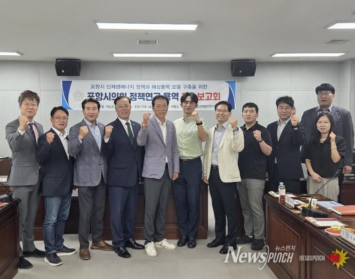 뉴스펀치 김종율 기자 | 포항시의회 의원연구단체 ‘바람길’은 지난 19일 오후 시의회 3층 회의실에서 기후 위기 대응과 탄소중립 실현이라는 시대적 요구에 따른 '포항시 신재생에너지 정책 방향과 해상풍력 모델 구축 방안'을 모색을 위한 정책 연구용역 착수 보고회를 개최했다.
