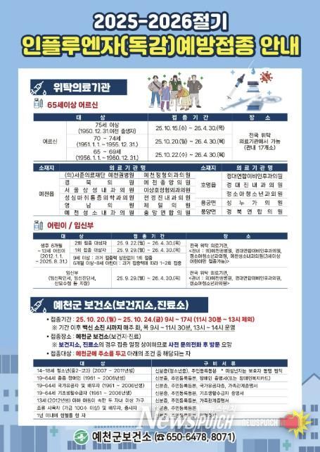 안남기 예천군보건소장은 “인플루엔자 예방접종은 개인은 물론 지역사회의 건강을 지키는 가장 효과적인 방법인 만큼, 대상자분들의 적극적인 접종 참여를 부탁드린다”고 말했다.