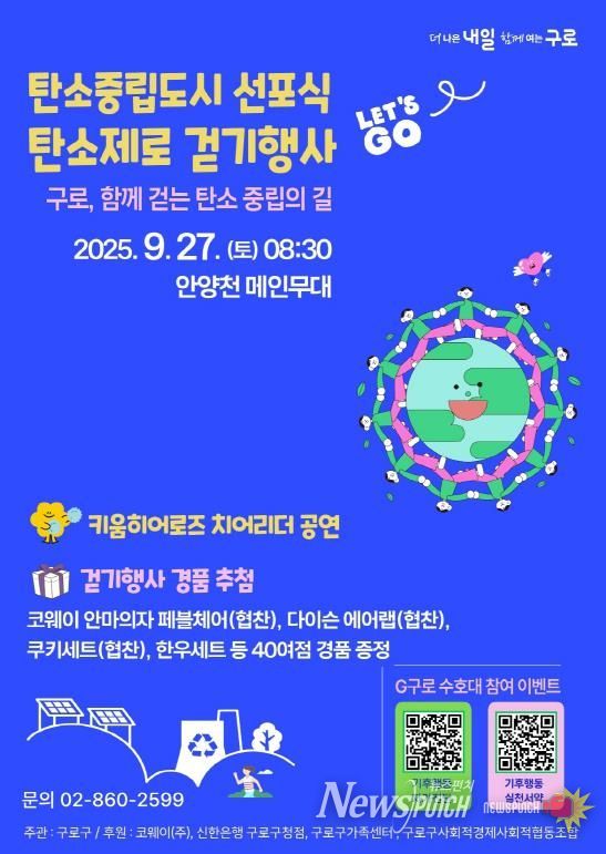뉴스펀치 김완규 기자 | 구로구가 오는 27일 오전 8시 30분 안양천 구로G페스티벌 메인무대에서 ‘구로, 함께 걷는 탄소중립의 길’을 주제로 ‘탄소중립도시 구로’ 선포식을 개최한다.