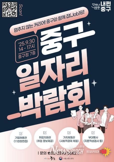 뉴스펀치 김완규 기자 | 서울 중구가 오는 30일 오후 2시부터 5시까지 중구청 7층 대강당에서 '2025 중구 일자리박람회'를 개최한다.