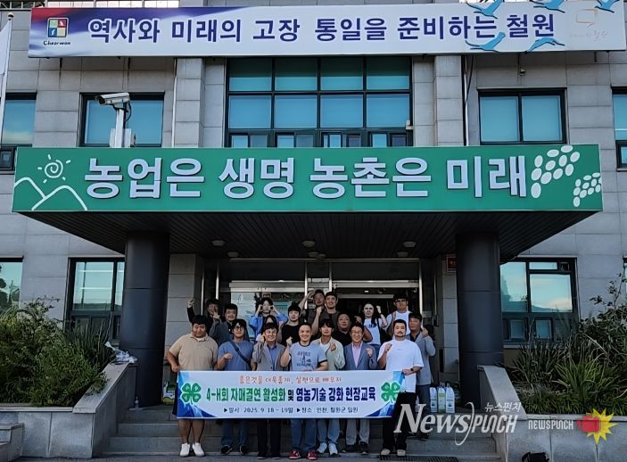 뉴스펀치 김보성 기자 | 철원군농업기술센터(소장 이희종)는 9월 18일부터 19일까지 양일간 철원군 및 관내 선진농가에서 철원군 4-H 연합회와 서귀포시 4-H 연합회가 함께 하는'4-H 자매결연 활성화 및 영농기술 현장교육'을 진행했다.