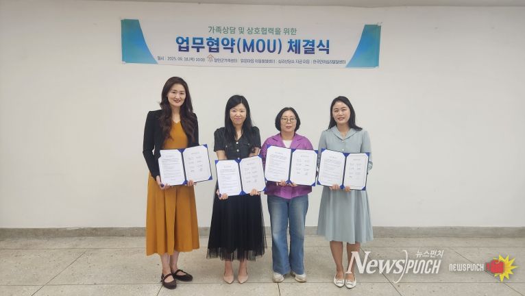 뉴스펀치 김보성 기자 | 철원군 가족센터(센터장 김민경)는 지난 9월 18일 철원군가족센터 교육실에서 맑은마음 아동발달센터 정혜미 센터장, 지금마음 심리상담소 윤미화 소장, 한국언어 심리발달센터 함보배 센터장과 가족 상담 및 상호협력을 위한 업무협약(MOU)을 체결했다. 이번 협약을 통하여 지역 내 가족 문제 해결과 심리적 지원을 강화하고, 상담 서비스의 질을 더욱 높일 계획이며, 또한 철원군 가족센터와 협약 기관들은 상호 협력하여 지역 주민들에게 더욱 폭넓고 깊이 있는 지원을 제공할 예정이다.