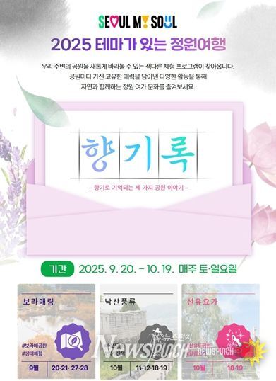 이수연 서울시 정원도시국장은 “이번 ‘테마가 있는 정원여행’은 공원의 역사와 문화를 체험 콘텐츠로 엮어 시민이 일상 속에서 정원의 가치를 다시 발견하도록 돕는 프로그램”이라며 “향을 매개로 한 오감 체험을 통해 각 공원의 특색을 느끼고, 정원 여가 문화가 시민 생활 속으로 확산되길 기대한다”고 밝혔다.