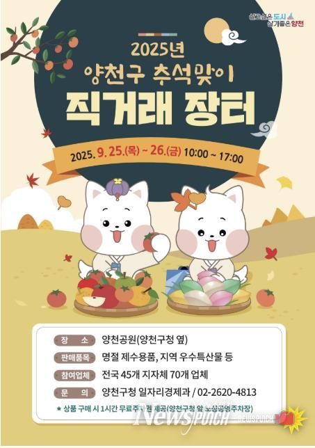 뉴스펀치 김완규 기자 | 양천구는 민족 최대 명절인 추석을 앞두고, 오는 9월 25일과 26일 양일간 양천공원에서 ‘2025년 추석맞이 직거래 장터’를 운영한다고 밝혔다.