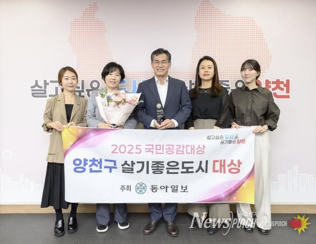 뉴스펀치 김완규 기자 | 양천구가 2025 국민공감대상 ‘살기좋은 도시’부문과 제10회 지역·사회발전공헌대상 ‘사회갈등해소’ 부문에서 연이어 대상을 수상하며, 사회적 가치 실현과 사회통합 노력을 대외적으로 인정받았다.