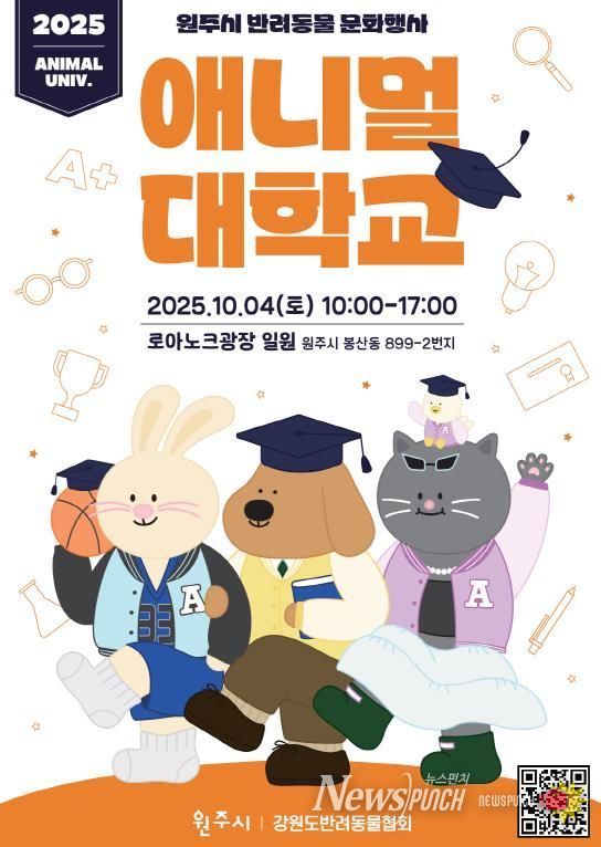 뉴스펀치 김보성 기자 | 원주시농업기술센터는 10월 4일 오전 10시 원주천 로아노크광장에서 반려동물 문화행사 ‘애니멀 대학교’를 개최한다.