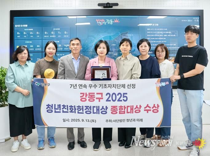 뉴스펀치 김완규 기자 | 강동구가 국회사무처 소관 사단법인 ‘청년과미래’가 주관하는 ‘2025 청년친화헌정대상’에서 ‘종합대상’을 수상하며, 7년 연속 청년정책 우수 자치단체로 선정되는 영예를 안았다고 23일 밝혔다.