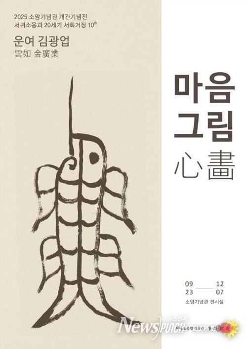 뉴스펀치 천세두 기자 | 서귀포공립미술관 소암기념관에서는 ‘서귀소옹과 서화거장’ 열 번째 전시로 서예가 운여 김광업(雲如 金廣業, 1906~1976)의 예술세계를 조명하는《운여 김광업, 마음그림心畵》을 오는 9월 23일부터 12월 7일까지 전시한다고 밝혔다.
