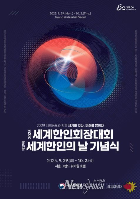뉴스펀치 김희경 기자 | 재외동포청이 주최하는 ‘2025 세계한인회장대회’가 9월 29일 서울 광진구에 있는 서울 그랜드 워커힐 호텔에서 막을 올린다.